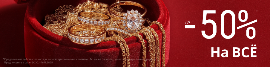 Предложение действительно для зарегистрированных клиентов до 16.11 и не распространяется на брендовые украшения.